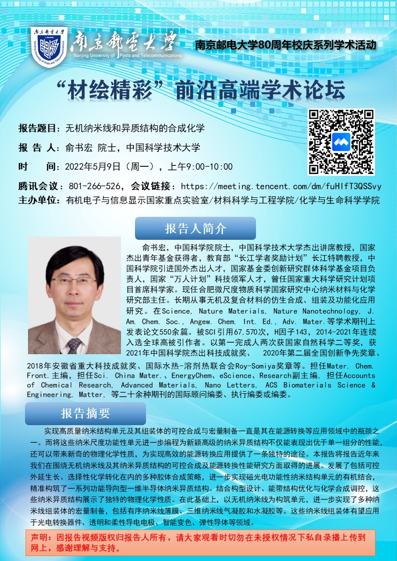 中国科学技术大学俞书宏院士学术报告