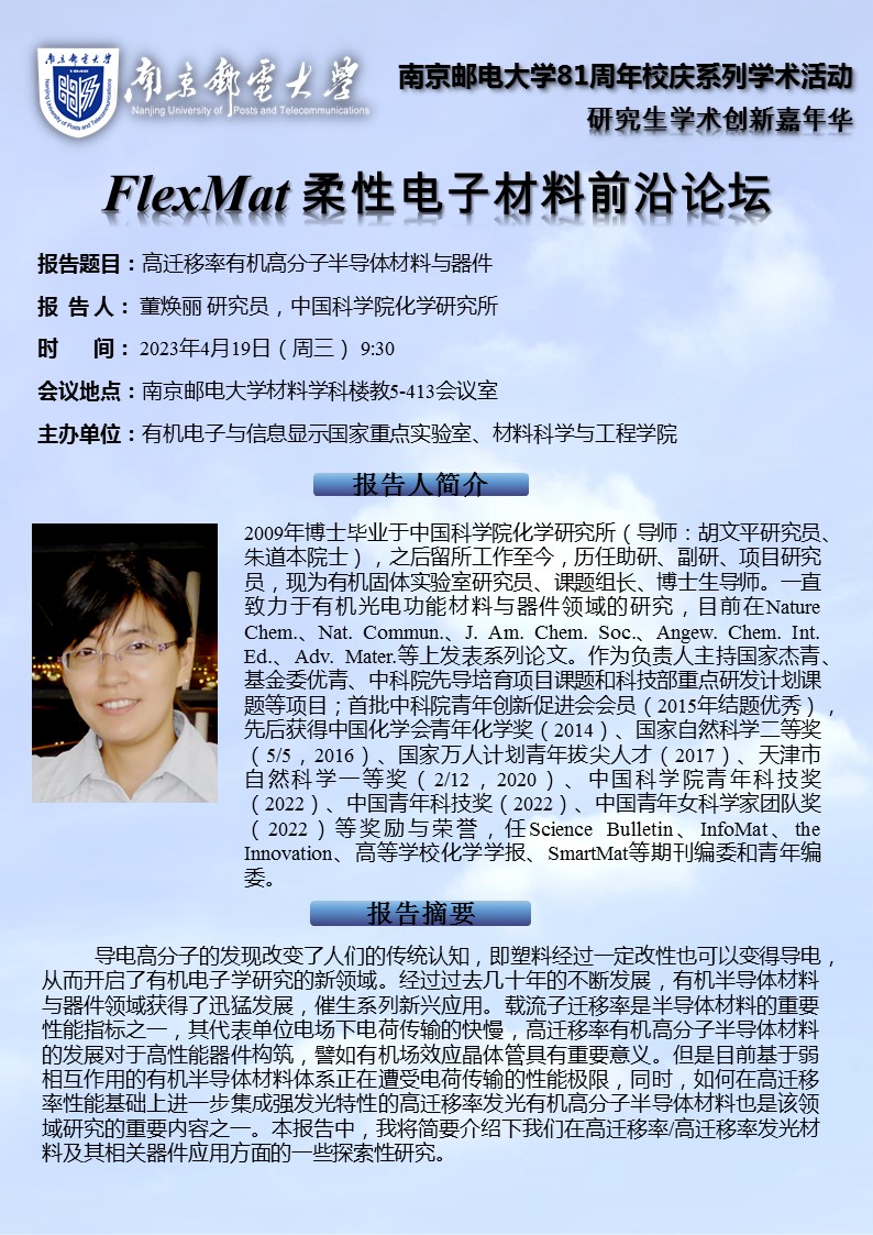FlexMat柔性电子材料前沿论坛:中国科学院化学研究所董焕丽研究员学术报告