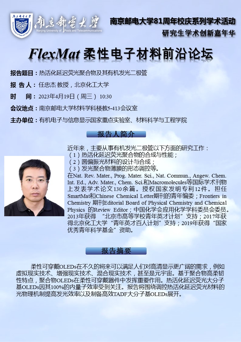 FlexMat柔性电子材料前沿论坛:北京化工大学任忠杰教授学术报告