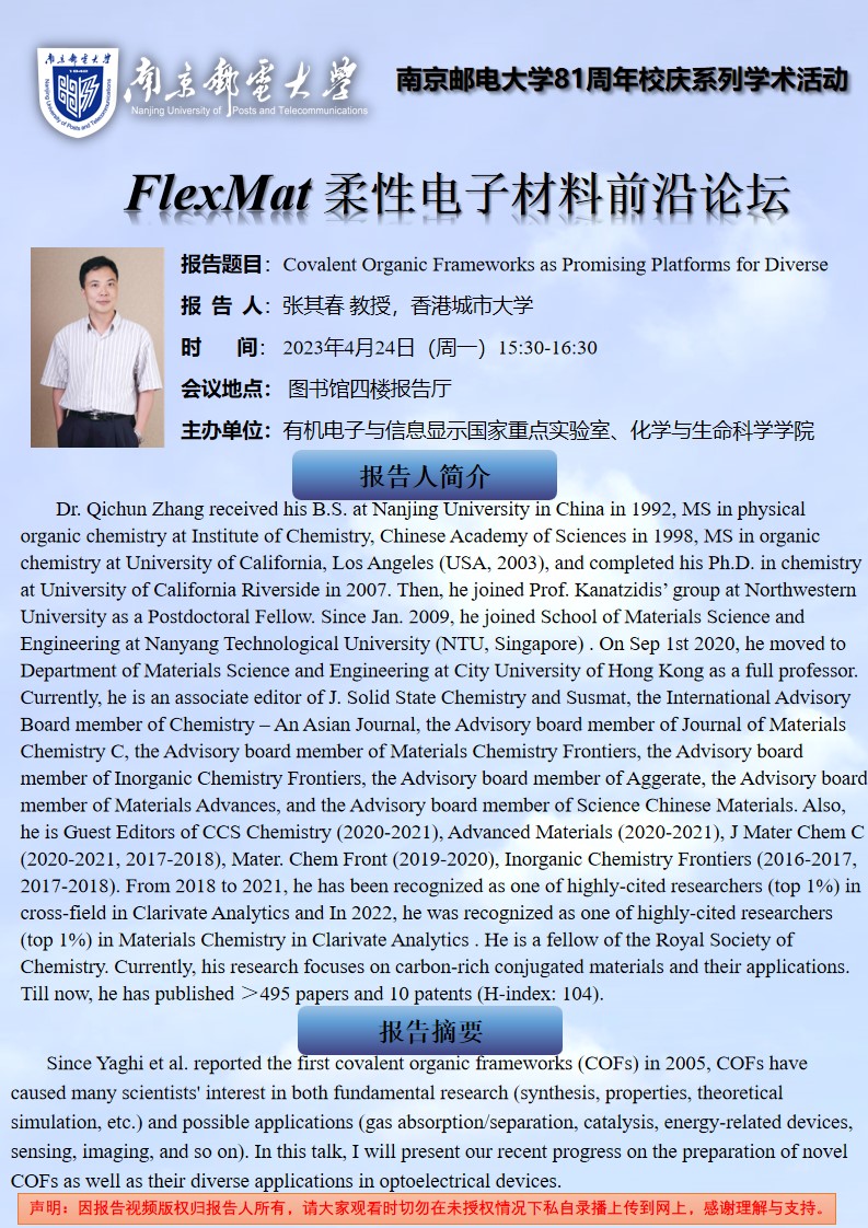 FlexMat柔性电子材料前沿论坛:香港城市大学张其春教授学术报告