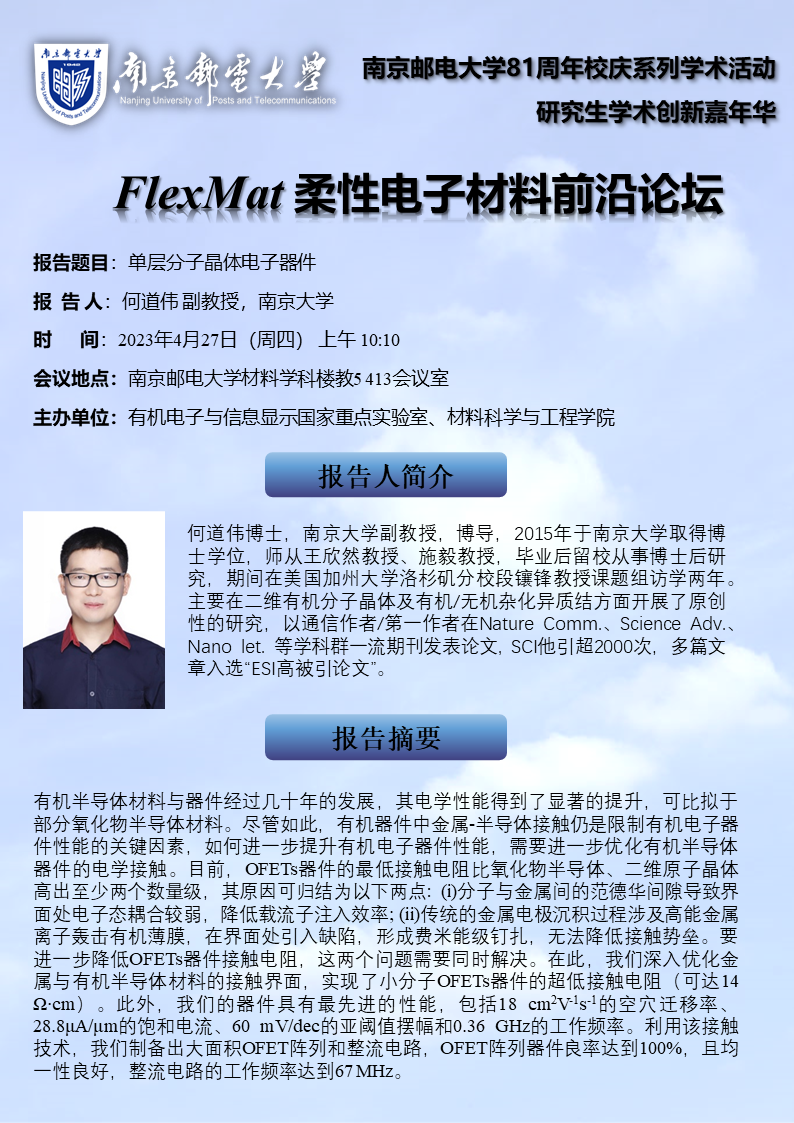 FlexMat柔性电子材料前沿论坛:南京大学何道伟副教授