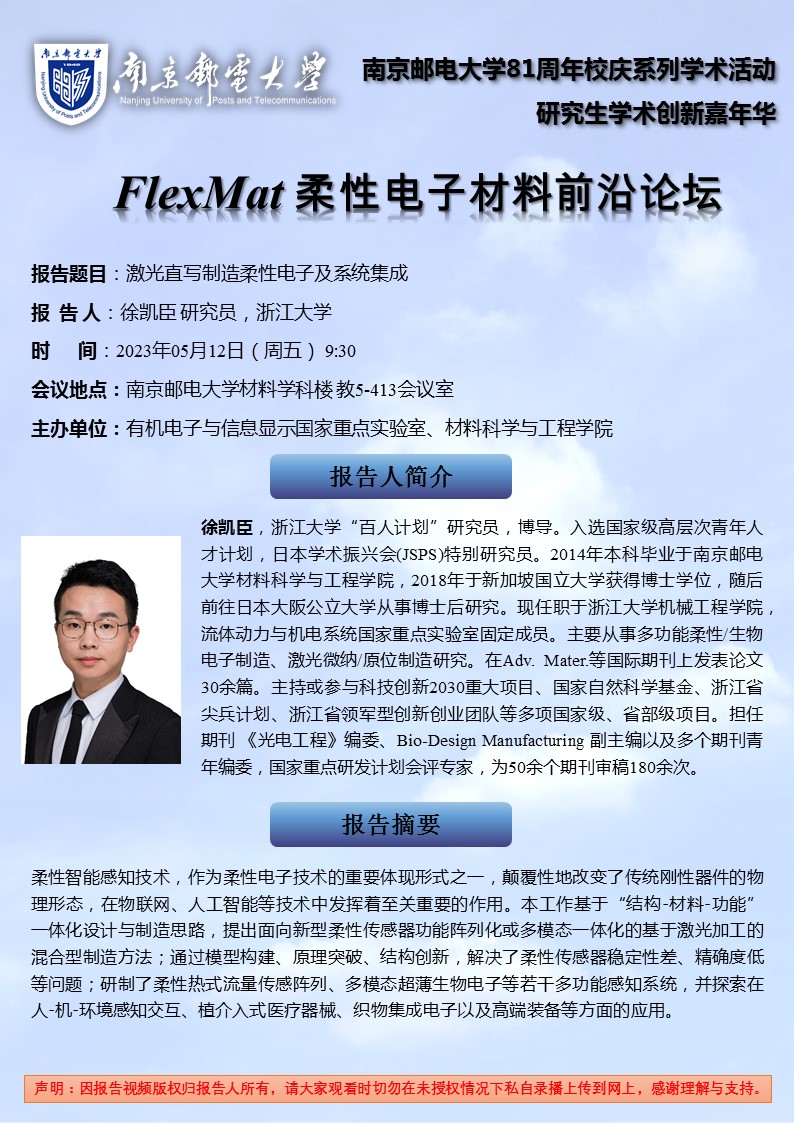 FlexMat柔性电子材料前沿论坛:浙江大学徐凯臣研究员学术报告