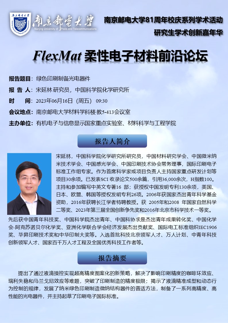 FlexMat柔性电子材料前沿论坛:中国科学院化学研究所宋延林研究员学术报告