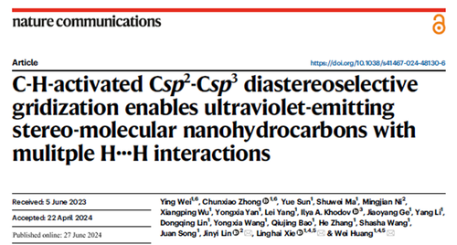 近日,南京邮电大学有机电子与信息显示国家重点实验室黄维院士、解令海教授、魏颖副教授团队在有机纳米烃(Organic NanoHydroCarbon, ONHCs)大环的设计、格子化合成及其宽带隙紫外发光领域取得关键进展。相关成果以为“C-H-activated Csp2-Csp3 diastereoselective gridization enables ultraviolet-emitting stereo-molecular nanohydrocarbons with mulitple H···H interactions”题发表在Nature Communications(《自然•通讯》)上。魏颖副教授和钟春晓博士为论文共同第一作者,林进义教授、解令海教授和黄维院士为共同通讯作者。