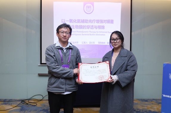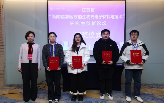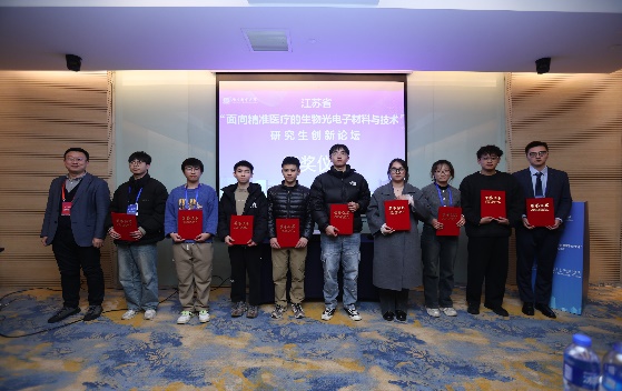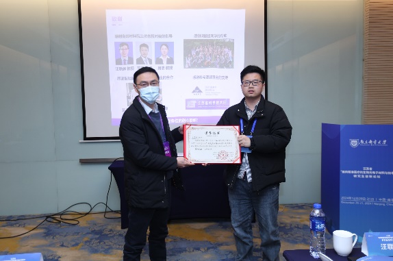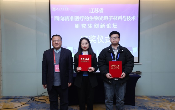 论坛各项议程由材料院教师侍茜茜老师主持。此次论坛围绕“面向精准成像与诊断的生物光电子材料与技术”和“面向精准治疗的生物光电子材料与技术”两大方向进行了学术报告。南京大学叶德举教授和南京医科大学胡本慧教授分别主持两部分的报告,并与同学们进行了探讨和交流,气氛热烈而融洽。随后,他们为每位作报告的同学颁发了荣誉证书。