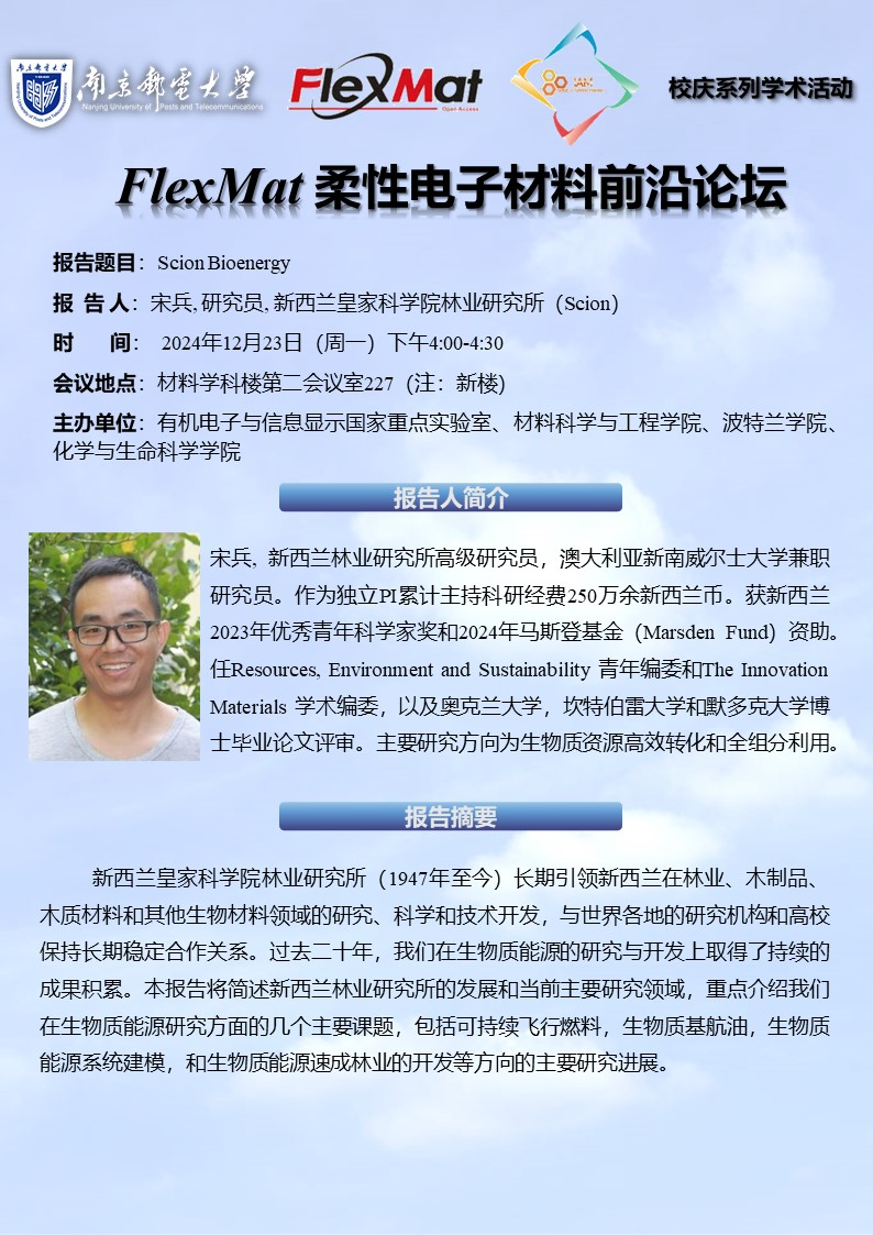 FlexMat柔性电子材料前沿论坛: 新西兰皇家科学院林业研究所(Scion) 宋兵 研究员