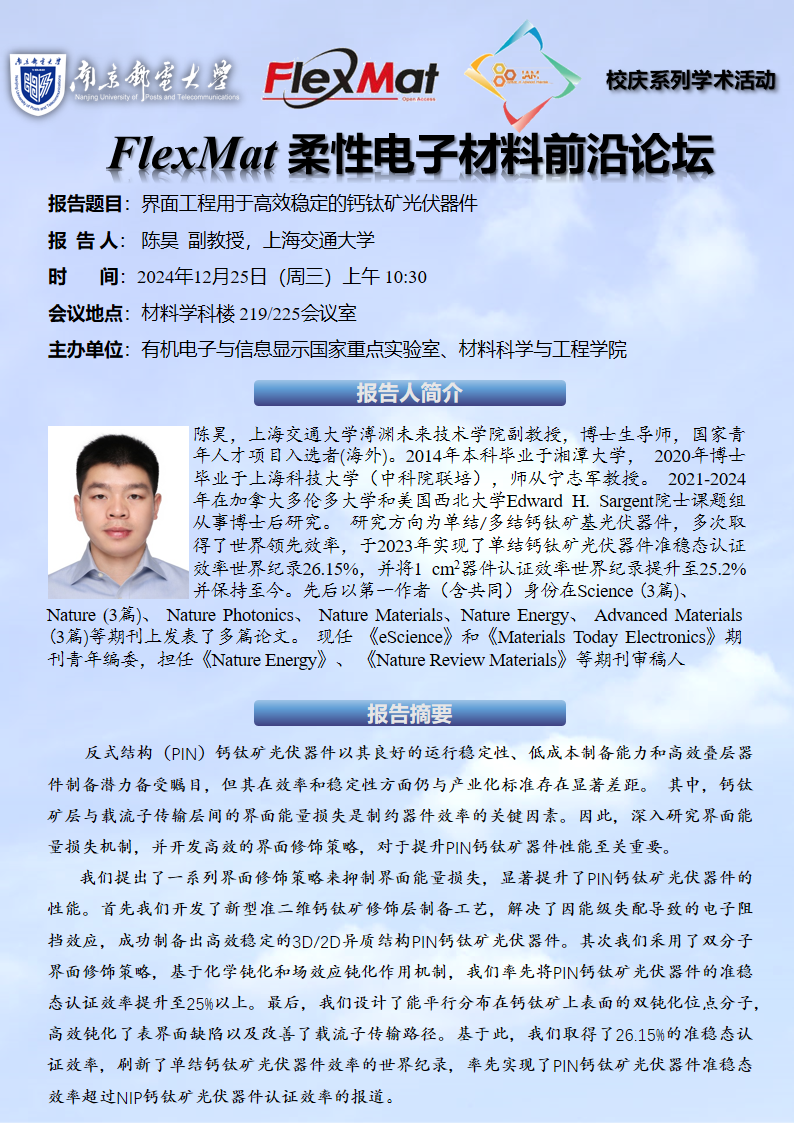 FlexMat柔性电子材料前沿论坛: 上海交通大学 陈昊 副教授