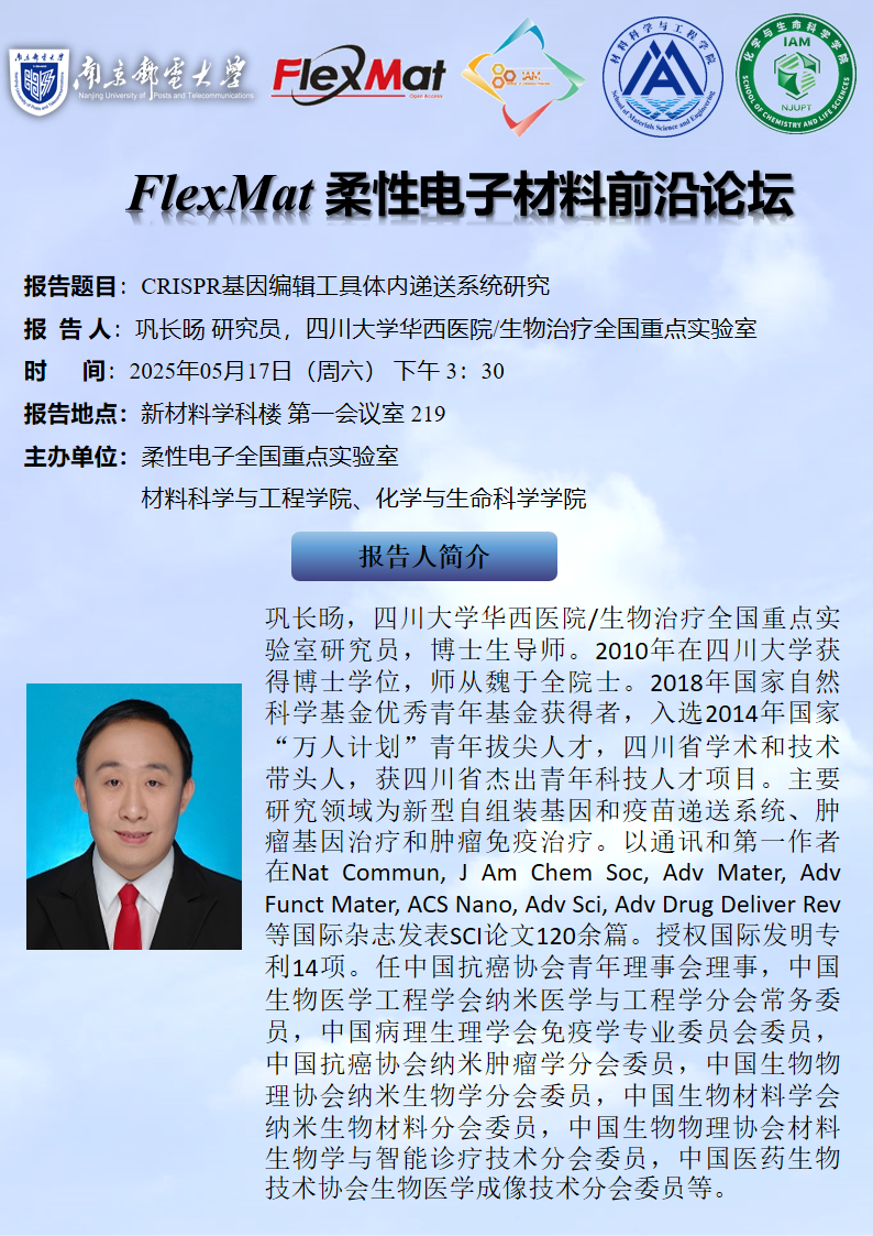 FlexMat柔性电子材料前沿论坛:四川大学华西医院/生物治疗全国重点实验室 巩长旸 研究员