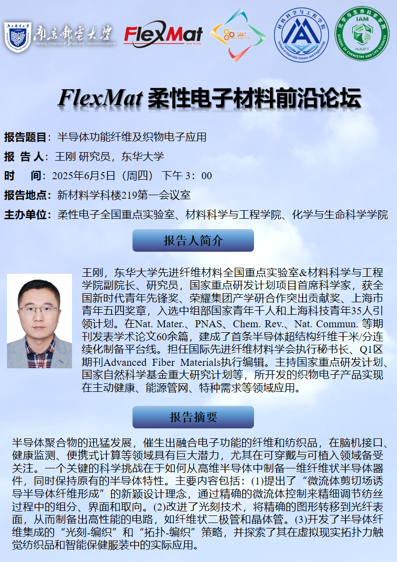 FlexMat柔性电子材料前沿论坛:东华大学 王刚 研究员