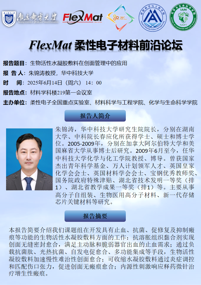 FlexMat柔性电子材料前沿论坛:华中科技大学 朱锦涛 教授