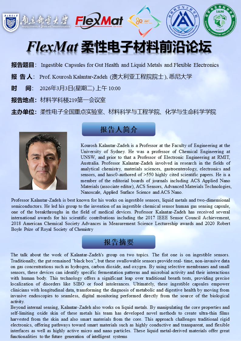 FlexMat柔性电子材料前沿论坛:澳大利亚工程院院士 悉尼大学 Kourosh Kalantar-Zadeh教授